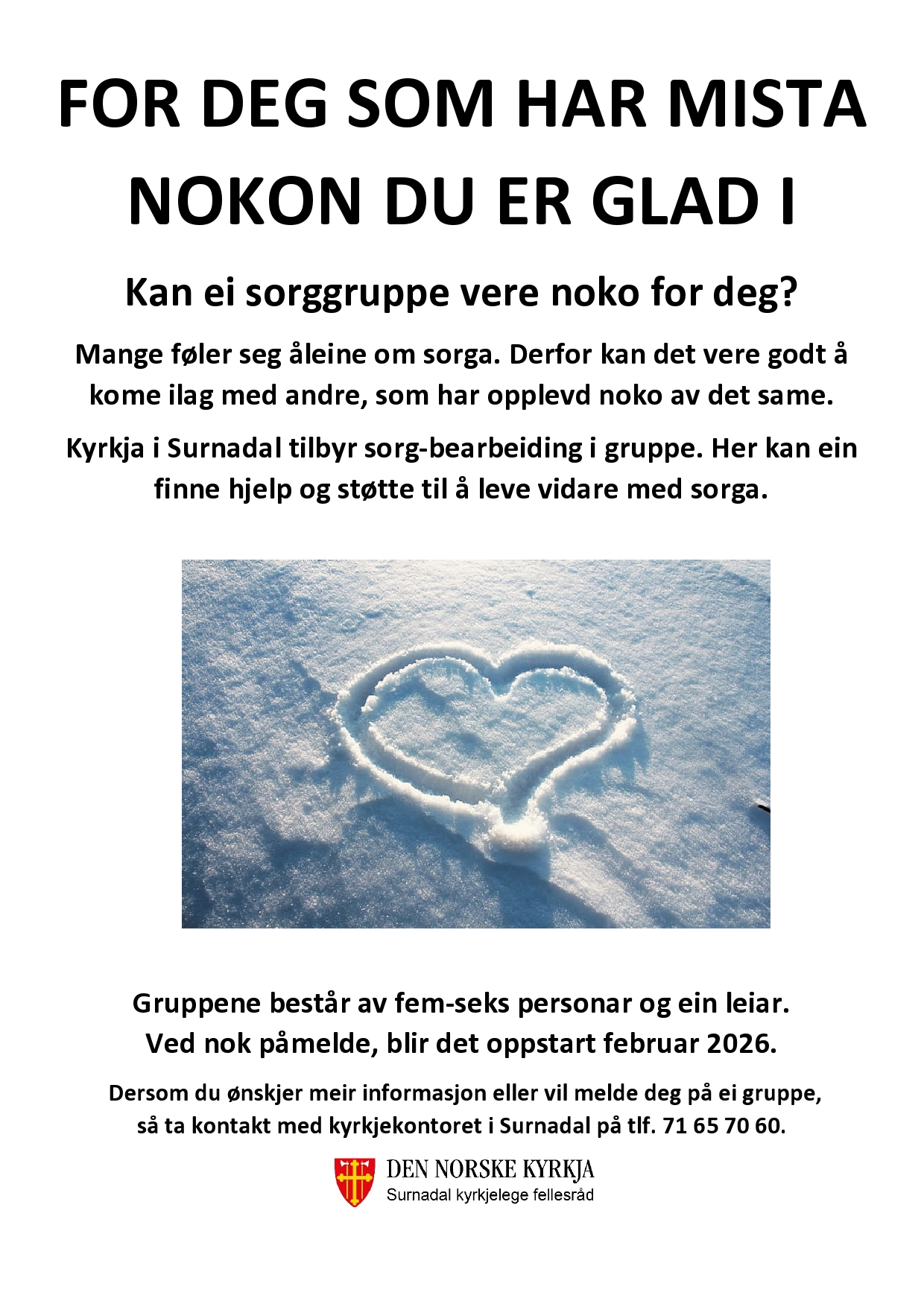 Vi vil gjerne vere til hjelp i denne situasjonen. Kanskje ønskjer du ein prat?                                                                               Du kan få snakke med prest eller diakon. Ring kyrkjekontoret på tlf. 71 65 70 60.