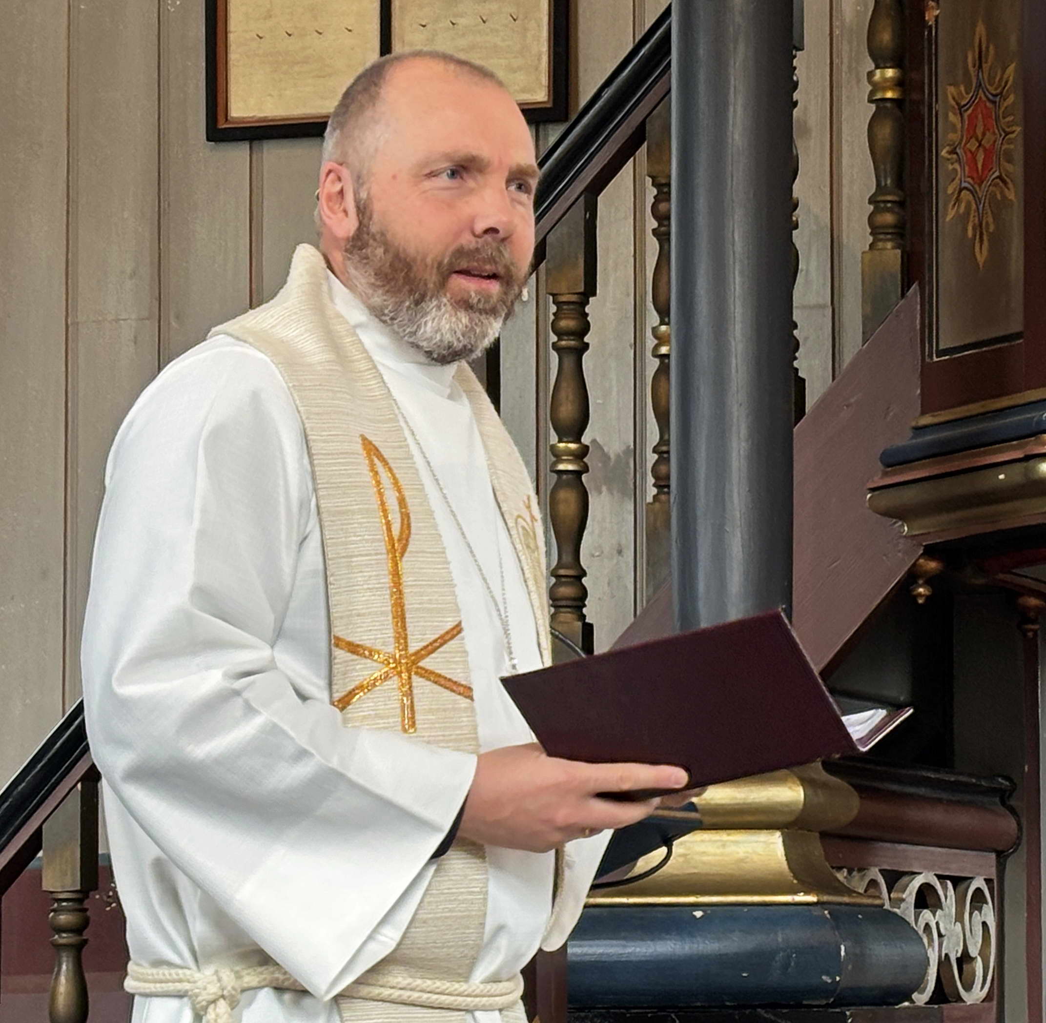 Prost Vidar Rygh leia søndagens gudsteneste og preika over Johannes-teksten om å sjå Jesus. Foto Bernt Bøe