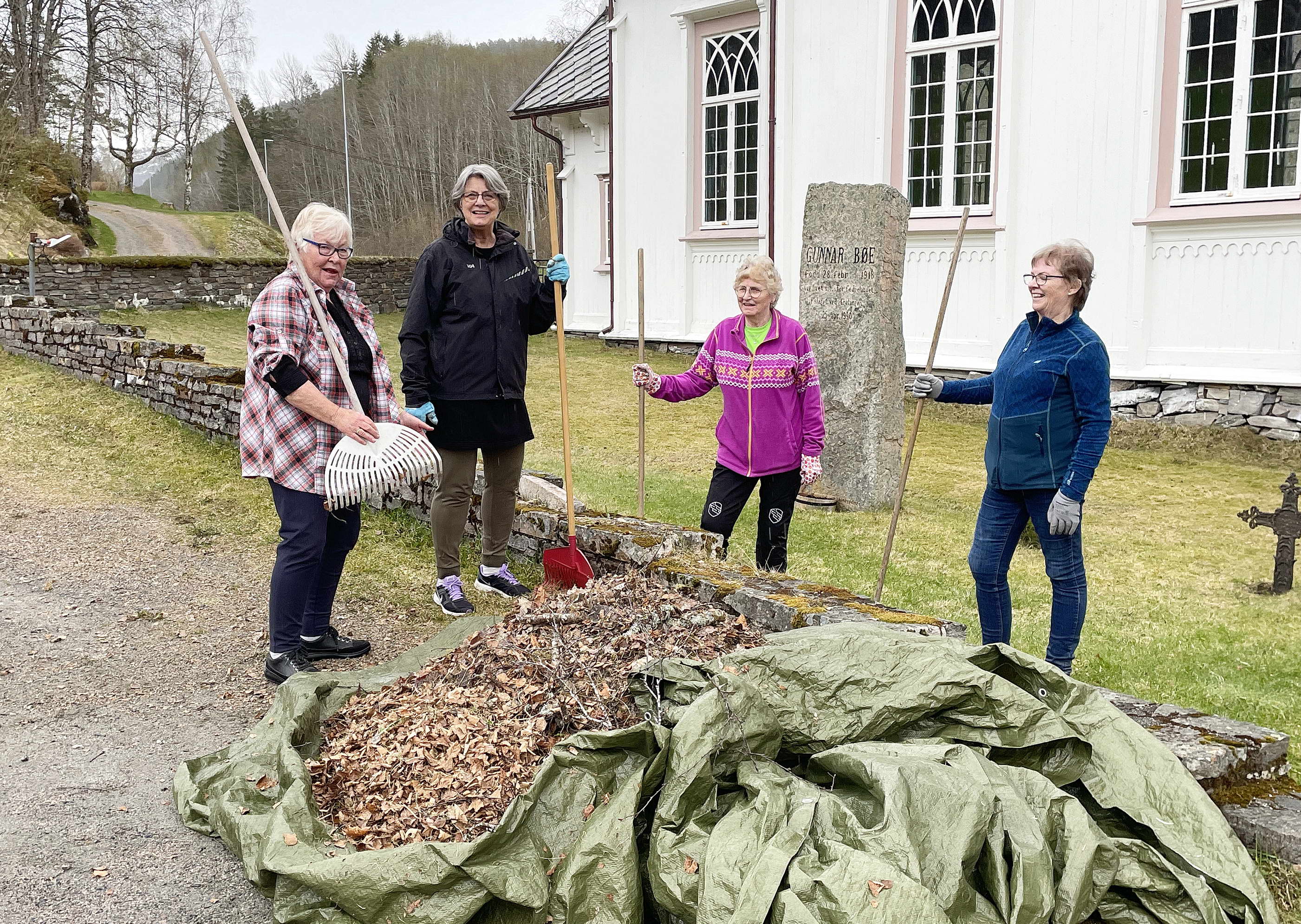 Åsskard har gravfelt og uteområde både attmed kyrkja og på det nye gravstedet ved Trøa. – Vi treng mannjamn opplsutning om dugnaden, sjølv om det er mindre lauv og rusk å fjerne enn før, seier Eva. – Men ta med høveleg reiskap!